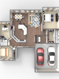 One car garage, 3 BR TH; 2 car garage, 4 BR SF homes